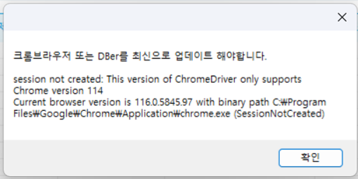 구글사에서 크롬브라우저가 갱신되면서 크롬드라이버도 같이 갱신해주었는데